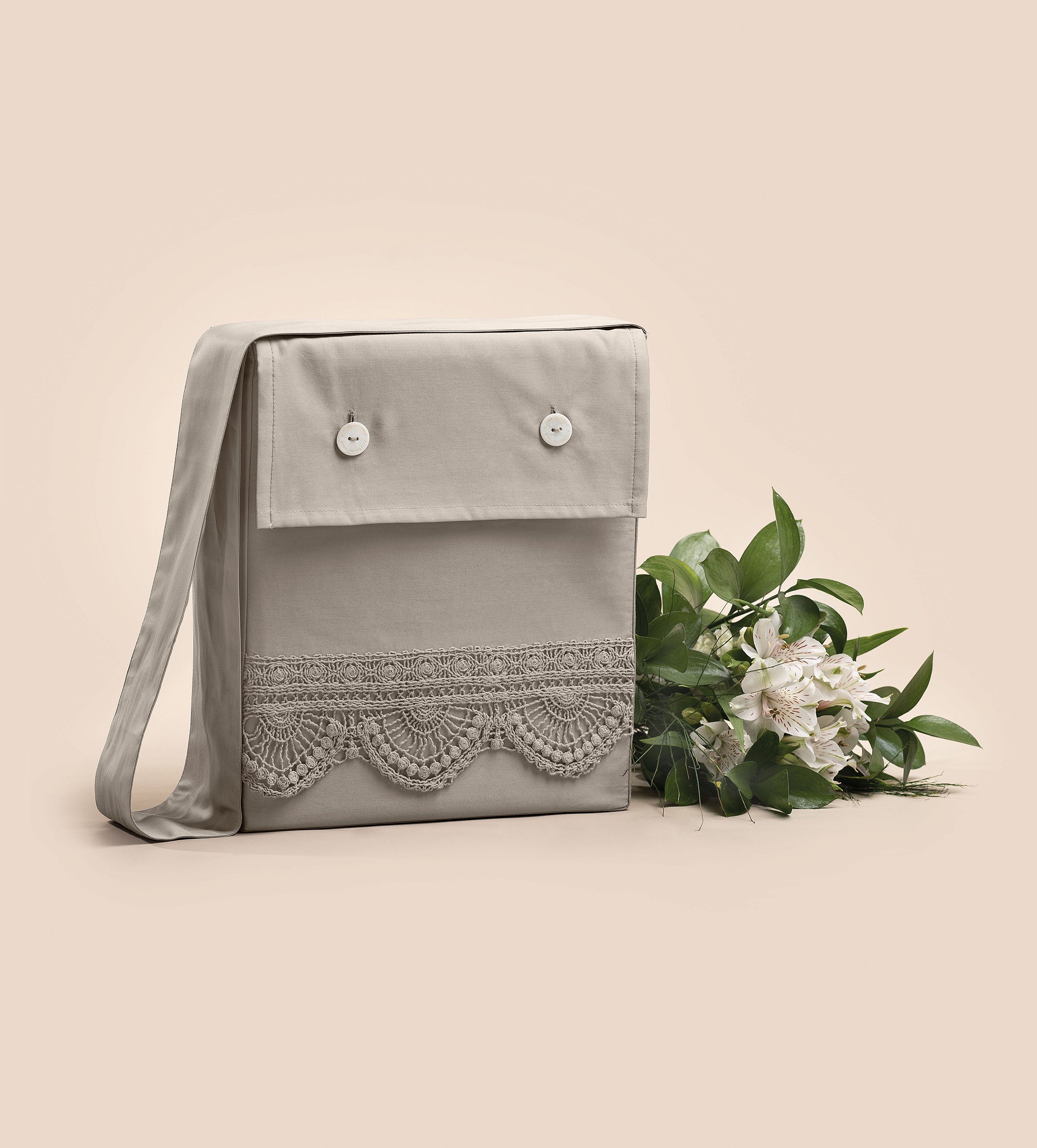 A embalagem do Jogo de Cama Aura Cetim 600 Fios tem as mesmas características do produto e pode ser utilizada como bolsa!