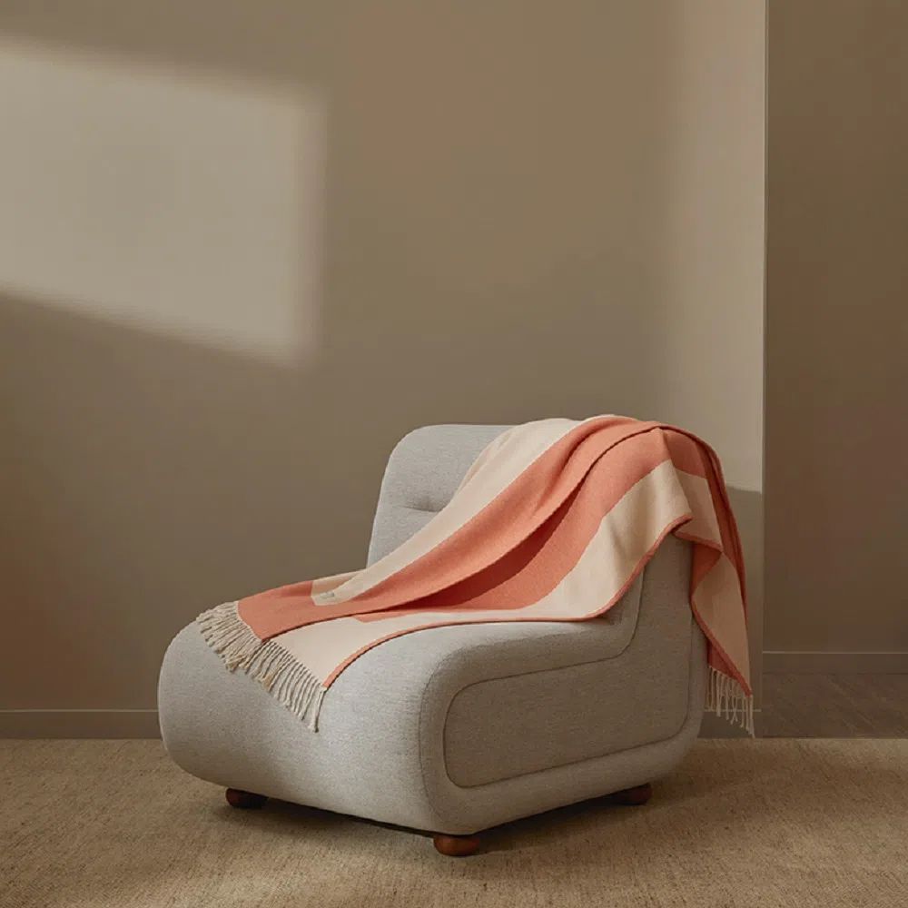 A Manta Trussardi Carmelina traz encanto e requinte para a cama, complementando um enxoval elegante. Seus tons em bege e coral juntamente com suas detalhadas franjas, transfere frescor e jovialidade ao ambiente. Sua confecção é em 100% Algodão. Possui caimento diferenciado, acabamento em franja e toque macio. Viva a beleza de Trussardi.