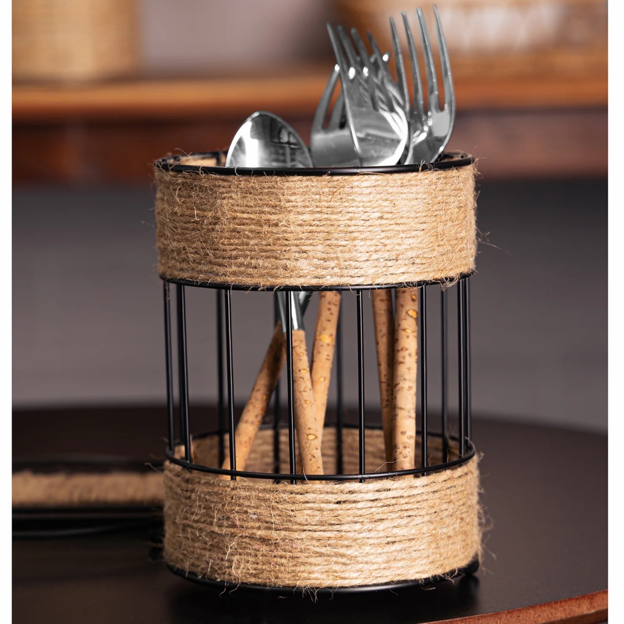 O Porta Talher com Detalhes em Barbante Preto Metal - Wolff é a peça que faltava para unir beleza e funcionalidade no seu espaço. Organize seus talheres com elegância e estilo.